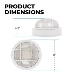 Round 8″ Integrated LED Bulkhead Light – White Indoor / Outdoor Wall Sconce – 780 Lumens – 3000K