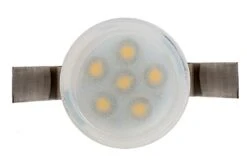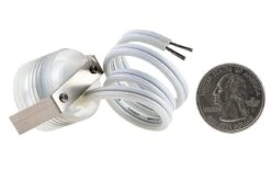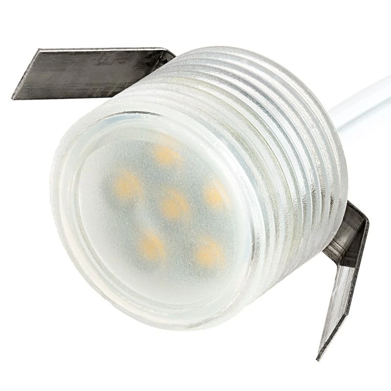 Mini round recessed LED lights are a great way to add safety lighting to steps, stairways, and hallways. This LED step light is also perfect for under-cabinet lighting, indoor accent lighting, closet lighting, bar lighting, and shelf lighting. The six LEDs have an output of 25 lumens and create a 90-degree beam for accent and functional ambient lighting. This low-voltage step light has a 12V AC/DC operation. A weatherproof polycarbonate housing and frosted polycarbonate lens seal all internal components while delivering soft, even light. Flush mount in a 1.38″ hole using mounted retaining clips. Select a face plate to match your designs.