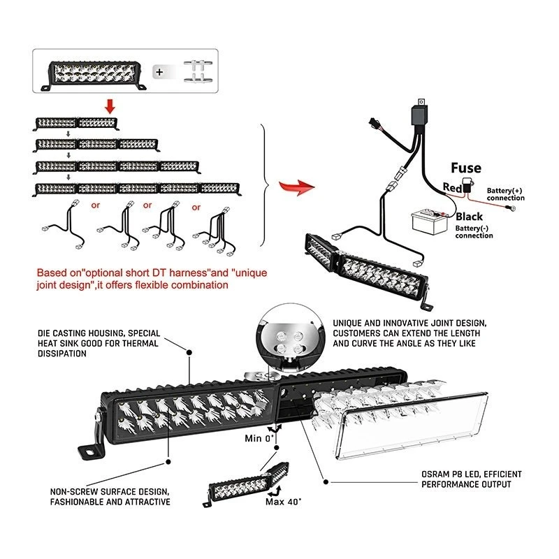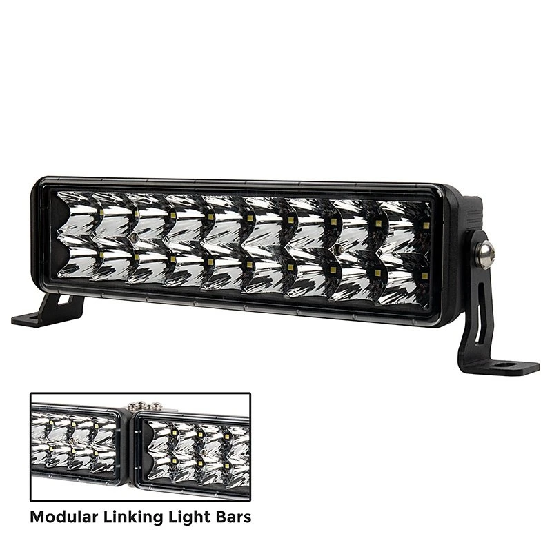 ORB series 10″ Light Bars allows you to choose and configure a customized light package for vehicle application. The 42-watt dual-row Spot Beam has a more concentrated, tight beam for piercing through dark off-road environments. Link multiple together to create a unique lighting system ready for off-road driving. Heavy-duty steel plates securely connect bars to each other, in a straight line or at an angle of up to 40°. Rugged die cast housing and impact resistant lens is rated IP67 for lasting durability in rough outdoor conditions. Each fixture has four points of access and included hardware for easy, custom mounting options.