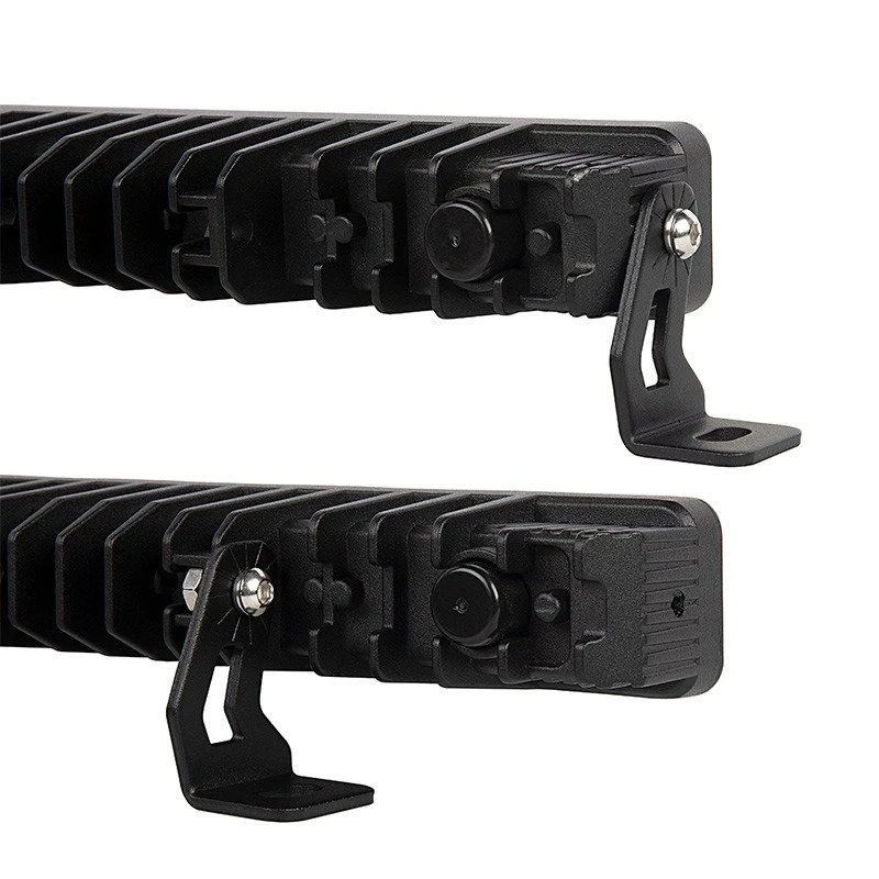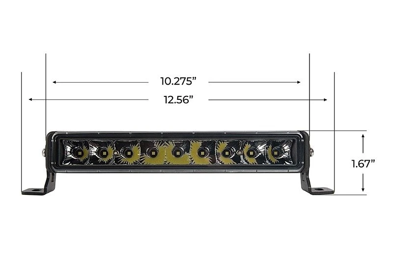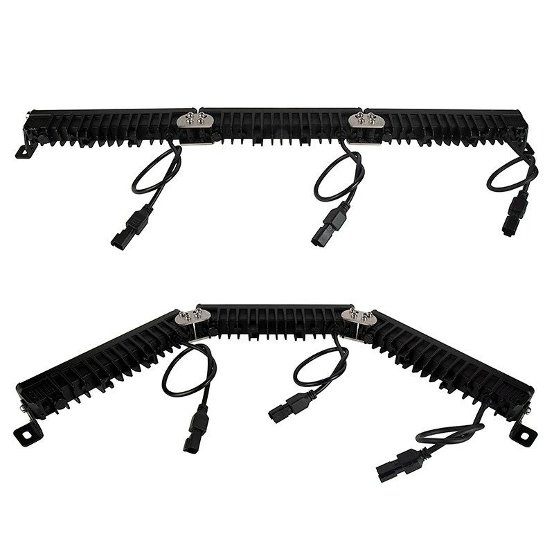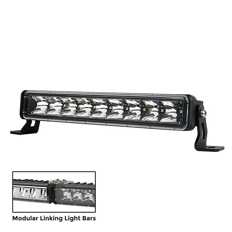 Our 10-inch linking off-road LED light bars allow you to select and configure a customized vehicle lighting package. The modular 45-watt light bar has a driving beam designed for various off-road applications. Link up to five 10-inch light bars together in any configuration to create a unique lighting system for your off-road driving needs. Heavy-duty steel plates securely connect bars in a straight line or at an angle of up to 40 degrees. The rugged die-cast aluminum housing and impact-resistant polycarbonate lens are IP67 rated for protection against dust and moisture for lasting durability in harsh outdoor conditions. Each fixture has four mounting points for custom mounting options. A power wire, DT pigtail adapter, and hardware for easy installation are included.
