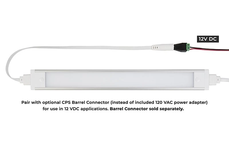 • For 12V applications, use barrel connector adaptors (sold separately)