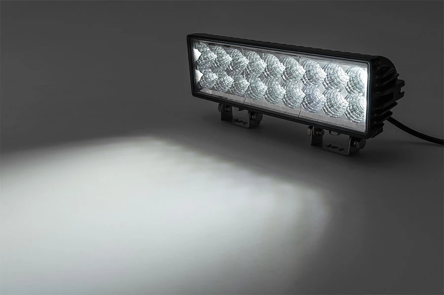 This Xtra series light produces 3,780 raw lumens of cool white light from 18 LEDs. The dual-row design emits a 35° beam pattern. The 12” long aluminum housing and polycarbonate lens protect internal components. An integral heat sink allows the LEDs to run cool, extending life span. Includes 2 adjustable stainless steel mounting brackets and installation hardware.