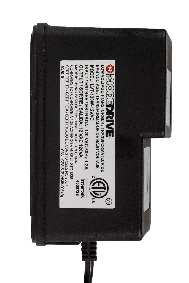 DiodeDrive 120W Landscape Transformer provides safe and efficient operation of outdoor lighting. It’s simple design mounts on building exteriors. For streamlined performance, digital controls allow three different modes of operation. Select either constant ON, automatic dusk to dawn, or adjust timer to turn OFF 1-9 hours after dusk. Includes overload and short circuit safety features. Heavy duty plastic case is rated to resist corrosion. Includes input power cord and mounting hardware.