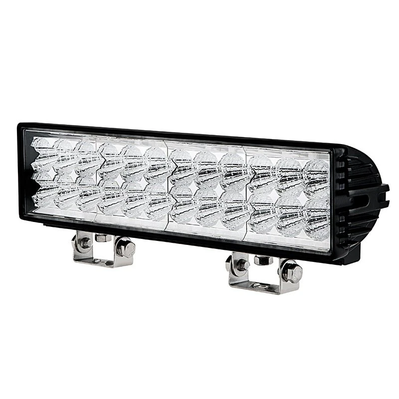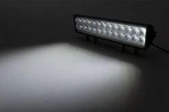 The Xtra series LED light bar emits 5,400 raw lumens from 24 LEDs in a dual-row design. The 14.5” long bar is constructed from aluminum with an integrated heat sink. A polycarbonate lens and rugged design keep the internal components protected from vibration and water. Includes 2 adjustable mounting brackets and installation hardware.