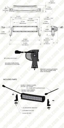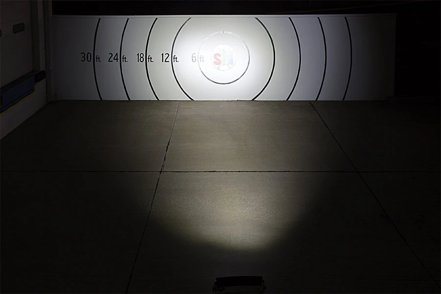 This Curved series LED off-road light has a narrow 8° beam pattern that provides illumination at long-ranges. The dual-row of LEDs that emit 7,600 raw lumens of cool white lights. Heavy-duty aluminum housing and polycarbonate lens protect internal components. The integral heat sinks keep the LEDs cool. Mounts with the included adjustable mounting feet and installation hardware.