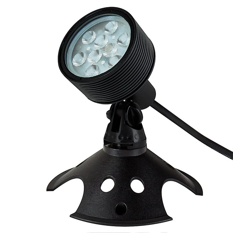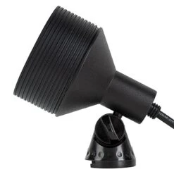 RGB LED landscape lights are an energy-efficient solution for architectural lighting, garden lighting, outdoor accent lighting, tree uplighting, and sign lighting. They’re also perfect for underwater pond lights and fountain lights when used with an optional weighted base. This 18-watt color-changing LED spotlight emits up to 525 lumens and produces a 40-degree beam pattern. An IP68-rated waterproof textured black powder-coated brass housing protects internal components. An adjustable mounting base allows the fixture to be aimed up or down within 80 degrees of the mounting surface. The LED spotlight has 12V AC/DC operation and a 4-1/2′ power cord with a G-LUX plug-and-play connector for easy installation in a G-LUX landscape wiring system. Use it in an existing low-voltage landscape wiring system with the G-LUX pigtail power cable. It must be controlled with the G-LUX RGB Remote.