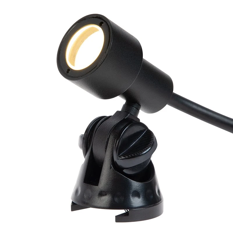 LED landscape lights are an energy-efficient solution for architectural lighting, garden lighting, outdoor accent lighting, tree uplighting, and sign lighting. They’re also perfect for underwater pond lights and fountain lights when used with a weighted base (sold separately). This 1-watt outdoor LED spotlight emits up to 60 lumens and produces a 60-degree beam pattern. An IP68-rated waterproof textured black powder-coated brass housing protects internal components. An adjustable mounting base allows the fixture to be aimed up or down within 80 degrees of the mounting surface. The LED spotlight has 12V AC/DC operation and a 4’6″ power cord with a G-LUX plug-and-play connector for easy installation in a G-LUX landscape wiring system. It can also be used in a low-voltage landscape wiring system with a G-LUX pigtail power cable.