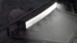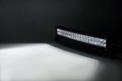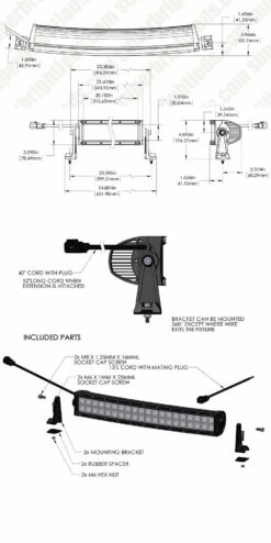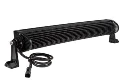 The 20” Curved series LED light bar fits the design of windshields and front bumpers. The narrow 8° beam pattern illuminates at long range with 9,600 raw lumens of light. The integral heat sink keeps the LEDs cool for longer life. Includes installation hardware and mounting feet and 40” wire lead with a mating 13” DT pigtail adapter.