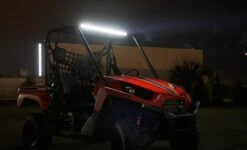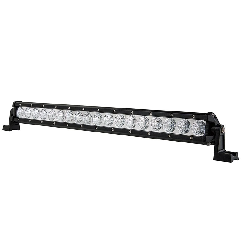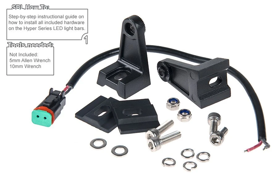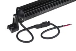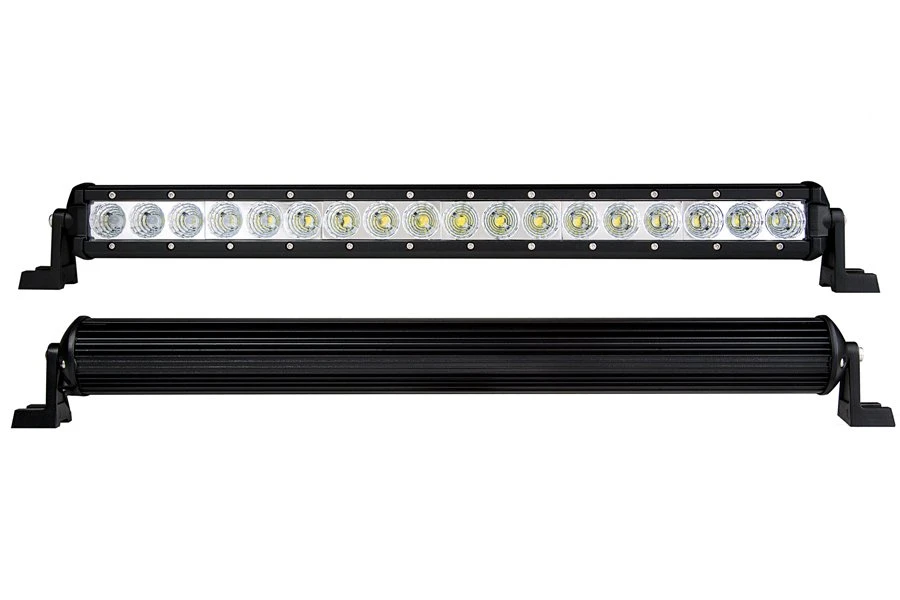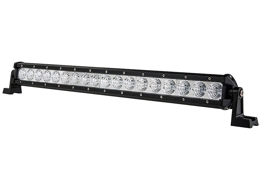 This Hyper series LED light bar has a single row of 18 LEDs that produce 3,024 raw lumens of cool white light in a 60° beam pattern. Durable and water resistant, the bar is built from an aluminum housing with a polycarbonate lens. The integral heat sink keeps the LEDs running cool, adding to their long life. Adjustable mounting brackets and installation hardware are included along with a 10” power wire.