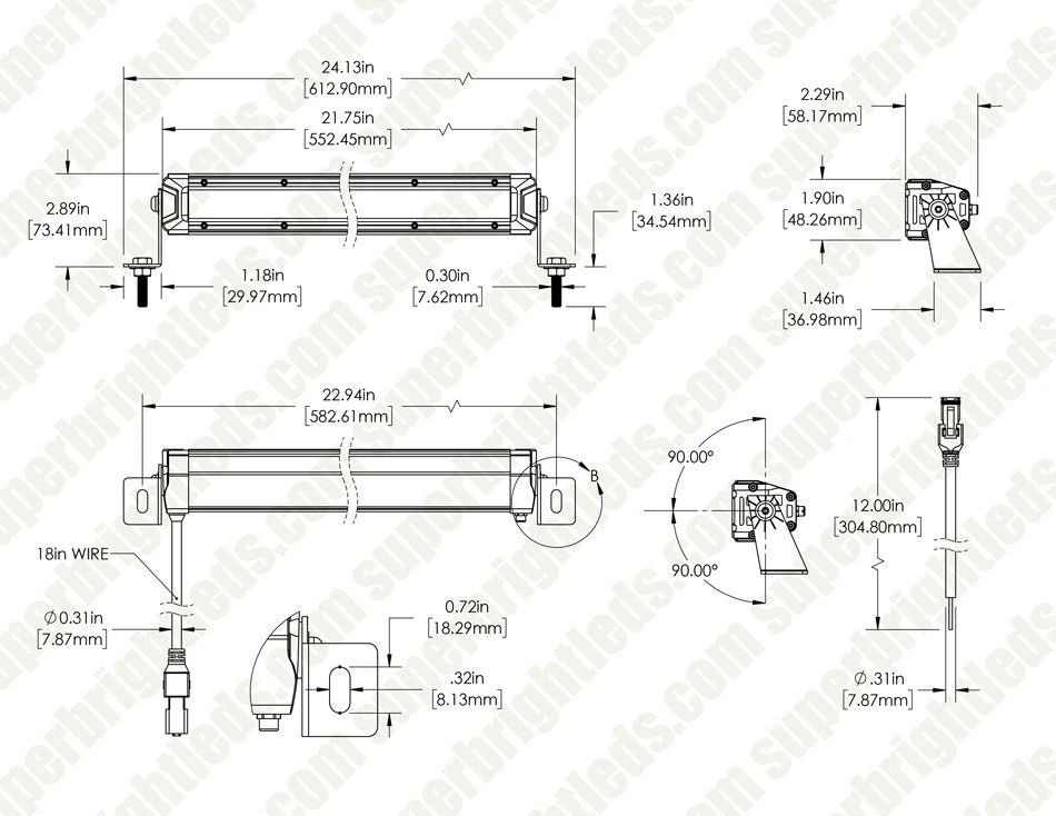 The high-performance 20″ LED light bar with combination beam uses an 8° spot light beam with a 60° flood light beam for increased visibility. The spot light beam enhances long-range visibility and the flood light beam enhances general area lighting. The sleek, singular row of LEDs delivers 7,200 lumens of light for on-road or off-road applications. It is constructed of corrosion-resistant aluminum housing with a polycarbonate lens. The attached DT connector provides a simple, reliable connection to a standard DT wiring harness. A steel mounting bracket and stainless steel hardware are included.