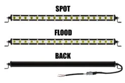 With a design that is only 1” tall, this Slim series LED light bar is a low-profile solution for off-road vehicle lighting. Select either a 60° flood for wider illumination or a narrow 30° spot beam pattern for seeing at greater distances. A single row of LEDs give the 20” long bar 5,000 lumens of cool white illumination. The aluminum housing includes an integral heat sink to protect internal components while keeping them cool.