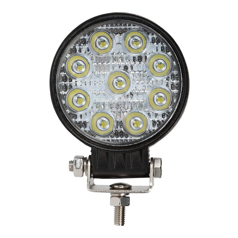 The UTE Series 3.5-inch LED pod lights feature heavy-duty construction with a classic lens design for uniform light distribution. Each 3.5″ round work light in this 2-pack emits 1,600 lumens of cool white in a focused 30° spot beam pattern. The durable LED pod lights are waterproof and shock resistant, with sealed PMMA lenses to keep the LEDs dry even when completely submerged. Aluminum housings with integral LED-cooling heat sinks protect internal components from overheating. Each work light has an adjustable stainless steel mounting bracket that mounts easily on off-road vehicles, tractors, and boats.