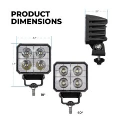 Increase off-road visibility with the LED pod lights. At 40W the pod lights produce 3,800 lumens and are equipped with either a 60º beam pattern or a 10º beam pattern. The 60º flood light beam pattern cuts through inclement weather and dust, providing close-range safety. The 10° spot beam pattern is ideal for improving long-distance visibility for spotting obstacles. The built-in direct DT connector provides easy installation and no point of failure at wire exit. Available as a single or a 2-pack.