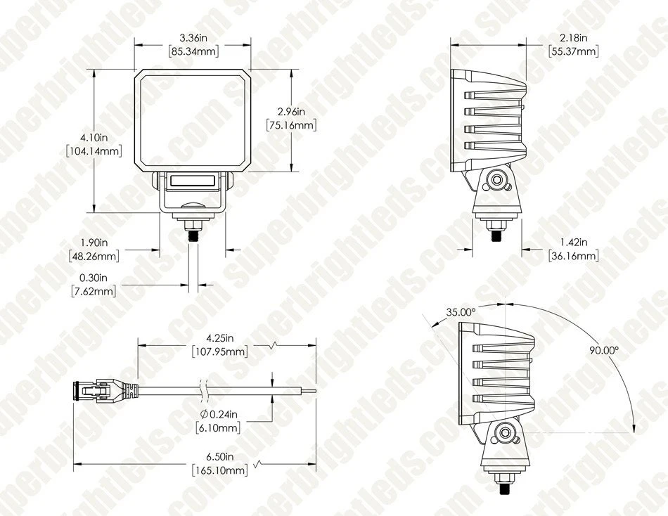 - Aluminum housing and polycarbonate lens