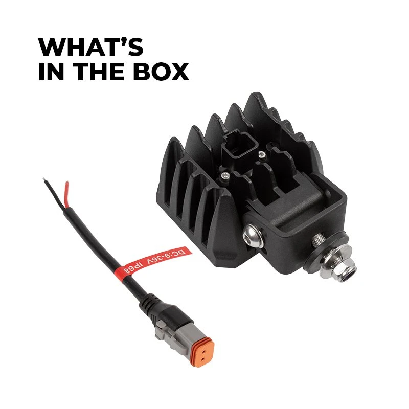Increase off-road visibility with the LED pod lights. At 40W the pod lights produce 3,800 lumens and are equipped with either a 60º beam pattern or a 10º beam pattern. The 60º flood light beam pattern cuts through inclement weather and dust, providing close-range safety. The 10° spot beam pattern is ideal for improving long-distance visibility for spotting obstacles. The yellow light assists in visibility in foggy weather conditions. The built-in direct DT connector provides easy installation and no point of failure at wire exit. Available as a single or a 2-pack.