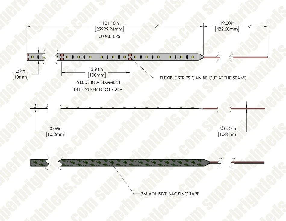 We at Super Bright LEDs are attuned to the needs of lighting professionals and contractors. That’s why our HighLight™ series includes this 30m reel of flexible LED strip lighting, perfect for completing multiple projects while cutting costs and reducing waste. Peel-and-stick 3M™ adhesive backing enables fast, easy mounting. Backed by a lifetime warranty.
