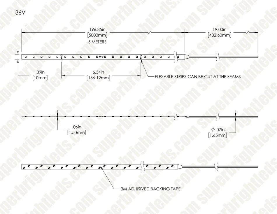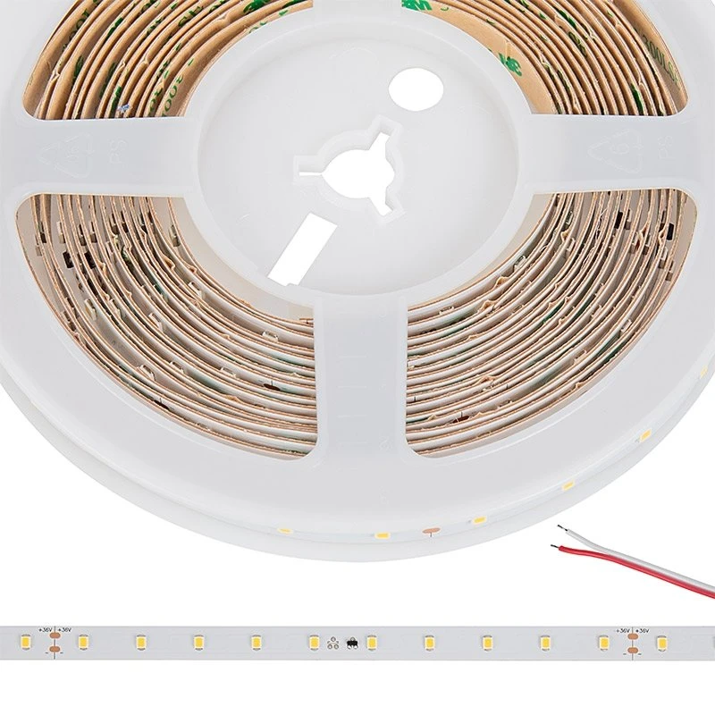 Higher voltage LED Strip Lights can illuminate a longer distance with out the worry of voltage drop. As a part of the Highlight series, this tape light uses pro-grade 2835 LED chips to create a powerful yet efficient line of light. High CRI of 90+ renders truer, vivid colors. The low-profile and flexible construction is a versatile solution for a wide range of indoor spaces. Use as accent lighting in coves and architectural features, or as task light for under-cabinets, work benches, and more.