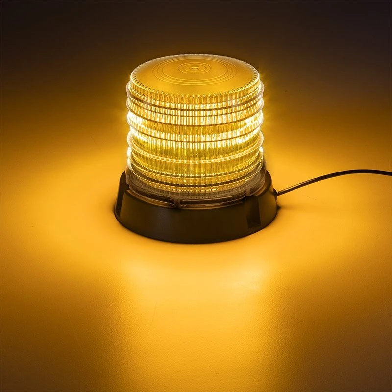 4-1/2" Amber LED Strobe Light Beacon - Magnetic Surface Mount - 12V Adapter - Triple Flash Pattern