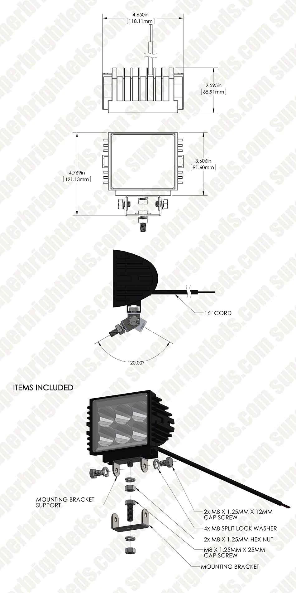 This Xtra series LED light bar emits 1,650raw lumens of cool white light from a compact 4-½” design. The 6 LEDs emit a 35° beam pattern. The rugged aluminum housing and polycarbonate lens protect the internal components while the integrated heat sink keeps the LEDs running cool for longer life. Includes installation hardware, mounting bracket, and 15” power wire.