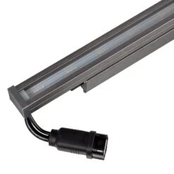 Illuminate interior and exterior walls and surfaces using the RGBW linear LED wall washer. The wall washer is constructed for exterior applications, featuring a corrosion-resistant aluminum housing, a non-yellowing tempered glass lens, and a waterproof IP66 rating. A 30° x 85° beam angle produces a focused light beam ideal for accenting walls and displays. Use a DMX controller to mix full RGB color, producing up to 16 million colors, or select a warm white 3000K color temperature. Link up to 20 lights together using 1′, 6′, or 15′ interconnects. Shop an array of optional DMX accessories and mounting accessories here.