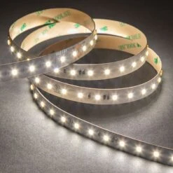 Higher voltage LED Strip Lights can illuminate a longer distance with out the worry of voltage drop. As a part of the Highlight series, this tape light uses pro-grade 2835 LED chips to create a powerful yet efficient line of light. High CRI of 90+ renders truer, vivid colors. The low-profile and flexible construction is a versatile solution for a wide range of indoor spaces. Use as accent lighting in coves and architectural features, or as task light for under-cabinets, work benches, and more.