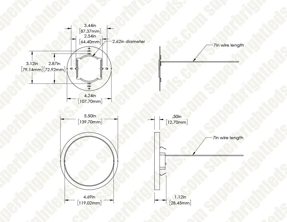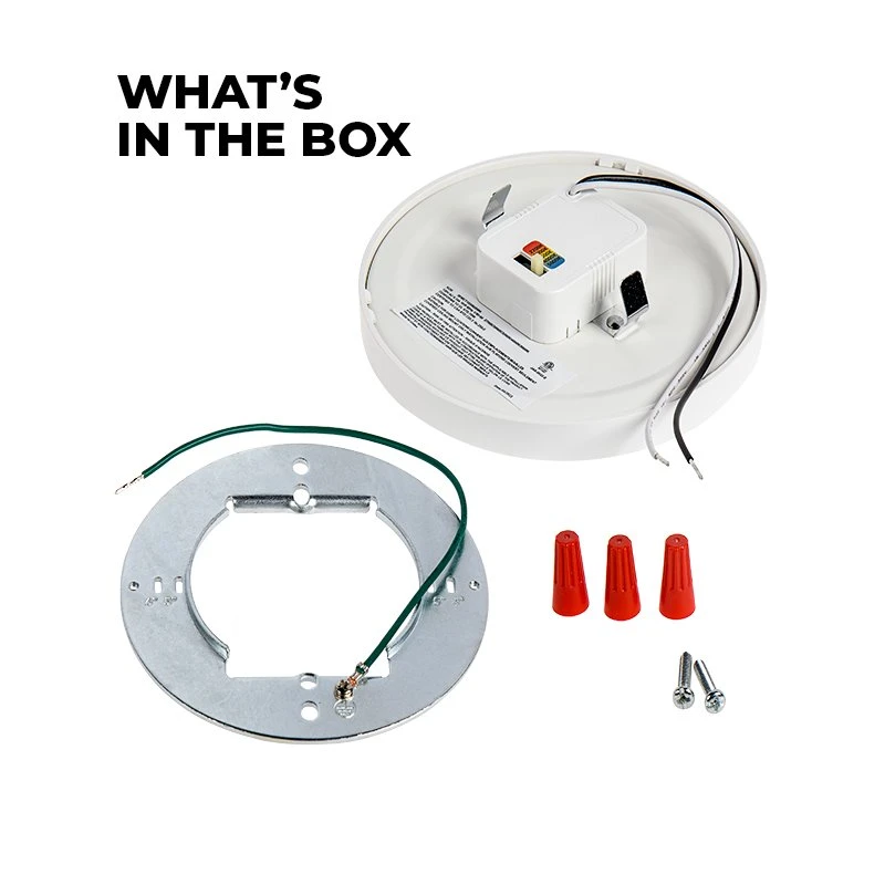The 5″ 10W low-profile LED flush mount downlight features a white base customizable with an optional metal trim ring to fit your decor. Equivalent to a 50W halogen fixture, the dimmable 10-watt ceiling light delivers up to 650 lumens with a selectable color temperature. Choose 2700K, 3000K, 3500K, 4000K, or 5000K to match your new or existing lighting design. Ideal for new construction and remodeling applications. Use the included bracket and hardware to flush mount to a junction box in your kitchen, bathroom, or hallway.