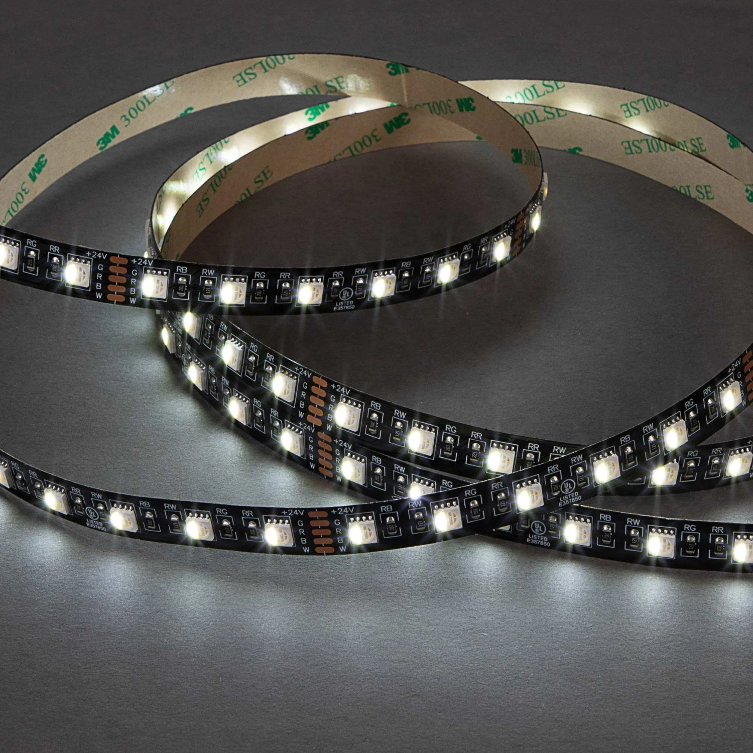 The DynamicColor series 5-meter RGBW LED black PCB strip light has a construction that allows the LED strip to blend seamlessly into dark surfaces, maintaining residential or commercial design aesthetics. The low-profile strip produces a wide range of output options with 4-in-1 RGB and white LED chips to ensure purer white tones and seamless color blending options. This strip light is 0-100% dimmable and has a maximum run of 18 feet. Cut the strip into 3.94-inch segments and quickly install it with the peel-and-stick 3M™ adhesive backing for customized surface mounting. Black LED strip lights are ideal for use on dark surfaces, including handrail and stair lighting, retail displays, and cabinet lighting.