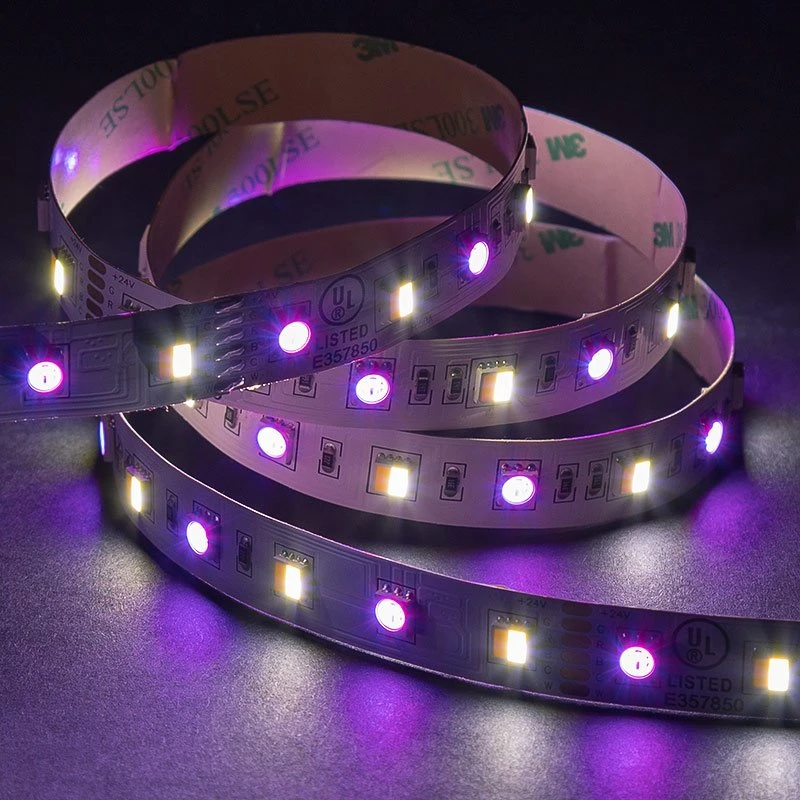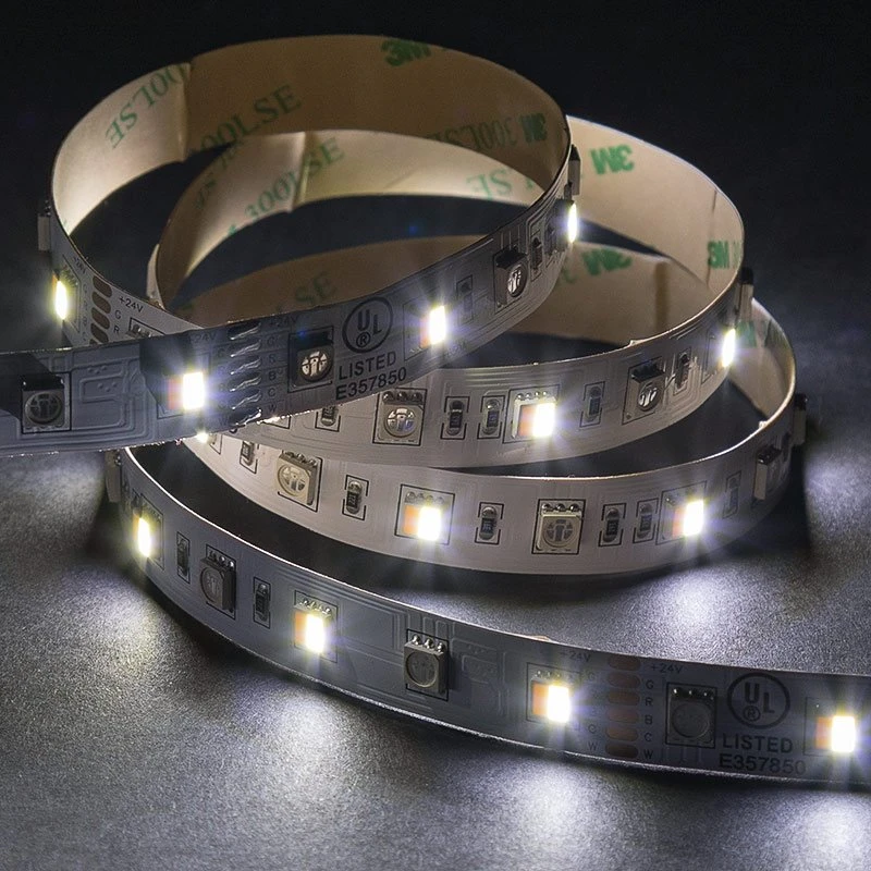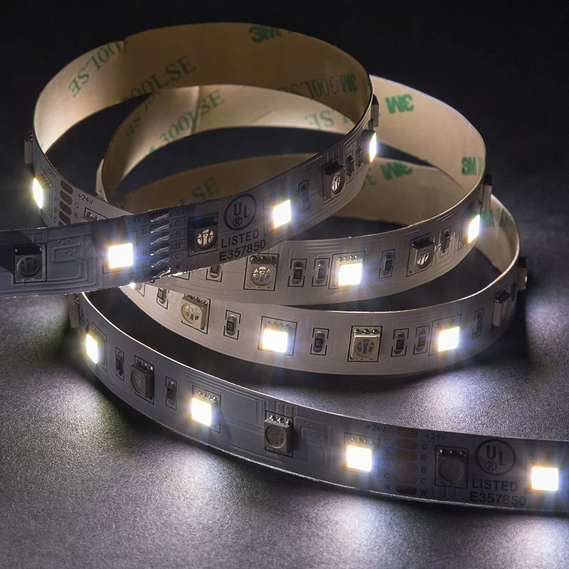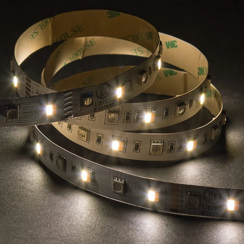 This flexible LED strip light uses alternating color-changing and tunable white LEDs to produce bold, brilliant illumination in a wide range of high-quality color tones. Enjoy seamlessly blended color tones and rich, true whites. Peel-and-stick 3M™ adhesive backing enables fast, easy mounting. Backed by a lifetime warranty.