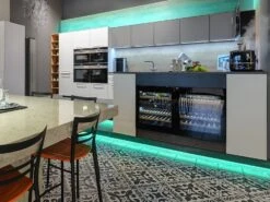 COB series LED Strip Light uses chip-on-board technology to create continuous colorful RGB lighting. The high density of LEDs produces a seamless linear light with out the need of a diffused cover. Dotless illumination is ideal for reflective surfaces such as granite countertops, tile floors, and more. Flexible construction and 3M™ adhesive backing make it easy to install, including on round surfaces and edges. Pair with a controller (sold separately) to customize color tone and settings.