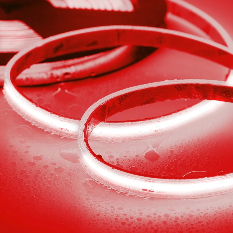 The 5m RGB Single-Color COB LED Strip Light uses chip-on-board technology to create a smooth, seamless line of light. Using a high density of LEDs, the COB strip light produces a continuous linear light without hotspots, ideal for applications on or around reflective surfaces such as granite countertops and tile floors. The strip provides vibrant red, green, or blue light to your application. The waterproof IP65 rating allows the strip the be installed in wet locations such as patios and decks. Easily customize the strip using the cut segments every 1.97 inches. Flexible construction and 3M™ adhesive backing make it easy to install, including on round surfaces and edges.
