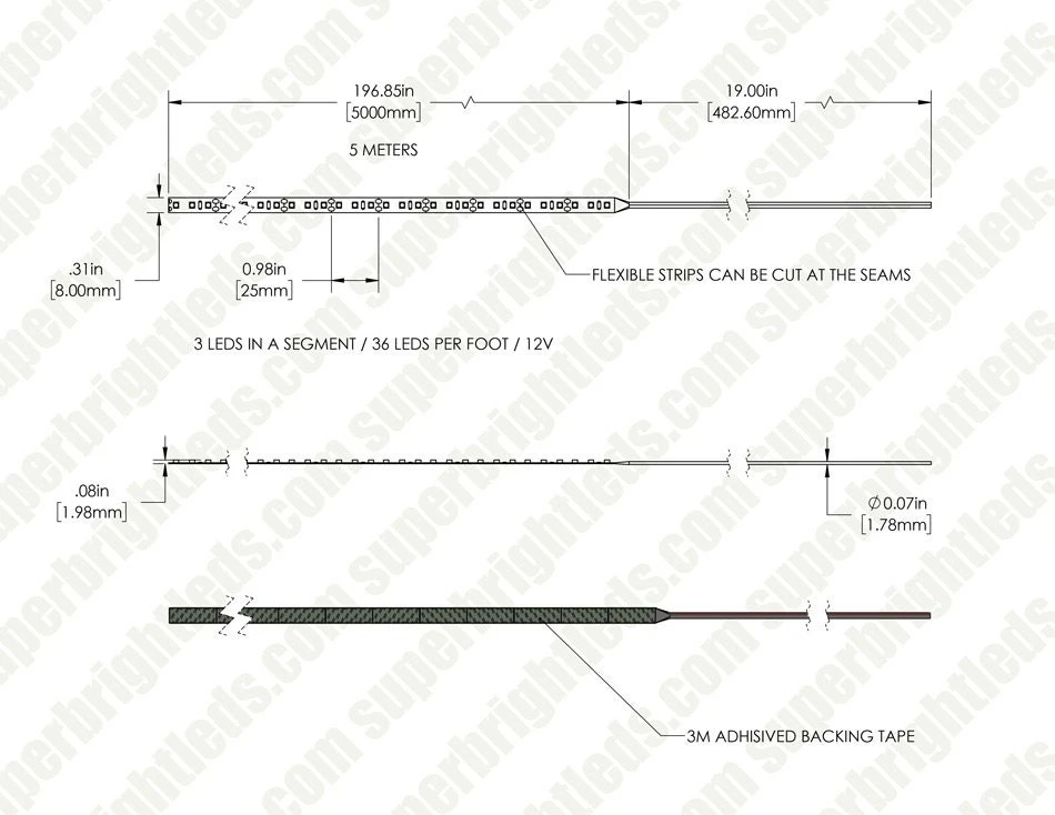This flexible LED strip light produces brilliant illumination in a wide range of high-quality color tones, and is a top choice for ambient and accent lighting. Brighten and enhance the aesthetics of any indoor space. Peel-and-stick 3M™ adhesive backing enables fast, easy mounting. Backed by a lifetime warranty.