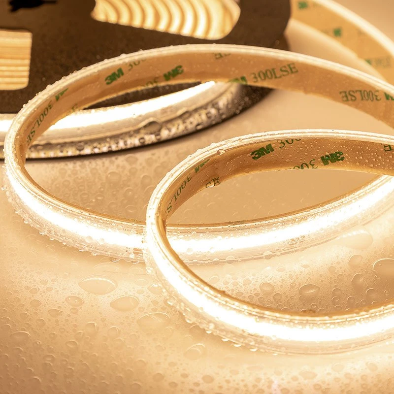 The 5m Tunable White COB LED Strip Light uses chip-on-board technology to create a smooth, seamless line of light. Using a high density of LEDs, the COB strip light produces a continuous linear light without hotspots, ideal for applications on or around reflective surfaces such as granite countertops and tile floors. The strip provides up to 434 lm/ft, totaling 7,125 lumens, of tunable white light. The waterproof IP65 rating allows the strip the be installed in wet locations such as patios and decks. Easily customize the strip using the cut segments every 1.97 inches. Flexible construction and 3M™ adhesive backing make it easy to install, including on round surfaces and edges. Pair with a controller (sold separately) to select from a range of cool to warm white, or changing patterns.