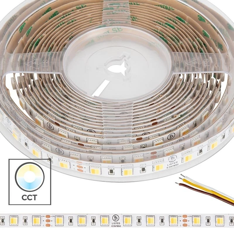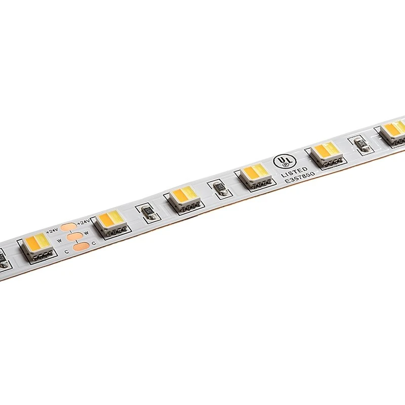 This flexible LED strip light combines warm white and cool white LEDs into a single node for seamless blending and purest white tones. Adjust color temperature with precision and ease. Peel-and-stick 3M™ adhesive backing enables fast, easy mounting. Backed by a lifetime warranty.