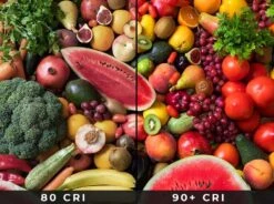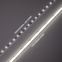 The COB Series LED strip light creates a smooth, seamless line of light. The superior design will not show visible dots or hot spots, making it ideal illumination for reflective surfaces such as granite countertops and tile floors. It eliminates the need for a lens cover and is also suitable for narrow applications like jewelry cases and backlighting. Chip-on-board technology produces high-quality light while mitigating heat buildup and improving strip flexibility. With high 90+ CRI, this tape light is a solution for places where quality color rendering is needed, such as display cases and kitchen counters. Measuring only 8mm, the strip light is fully dimmable, cuttable in 1.41″ segments, and 3M™ adhesive-backed.