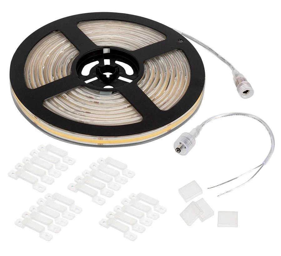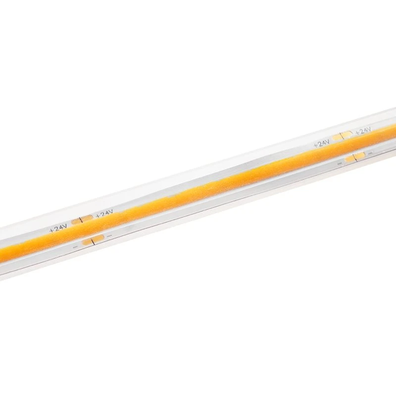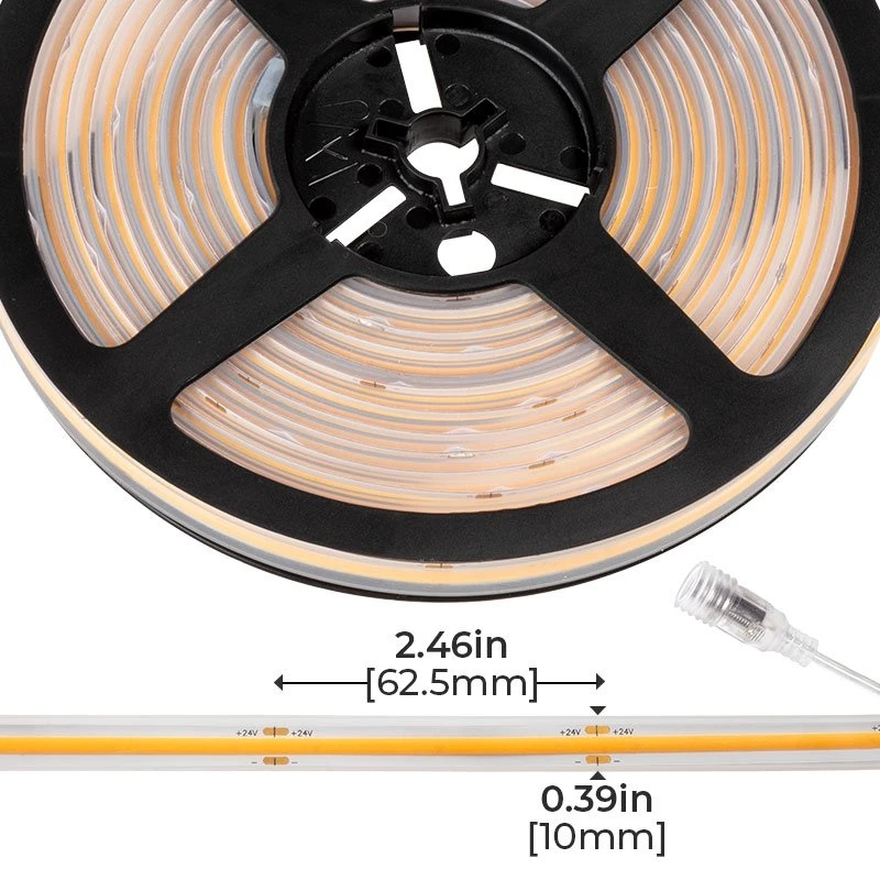 COB Series LED COB Strip Light is built to produce a smooth, seamless line of light and withstand wet locations. Chip-on-board technology has a higher density of LEDs for a more intense, uniform light that reduces heat buildup. The superior design will not show visible dots or hot spots, making it ideal for reflective surfaces such as granite countertops and tile floors. With no need for additional diffusers, the low-profile strip can illuminate more narrow applications. The protective silicone sleeve allows the strip to be installed in areas exposed to splashes or sprays of water. Improved flexibility can wrap light along edges and curved surfaces.
