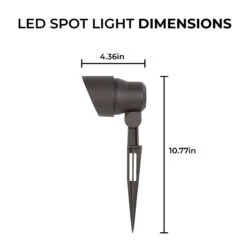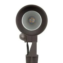 This LED spotlight combines durability with top-tier performance. Its sturdy aluminum body with stands water, corrosion, and natural elements. An adjustable light head focuses stunningly bright illumination to enhance gardens, pathways, lawns, and other outdoor spaces. Mount this fixture directly into the ground with the attached metal spike. Low-voltage LEDs outlast traditional bulbs, significantly reducing maintenance costs.