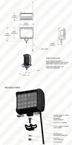 This Titan series allows selection of either the 30° spot beam, 60° flood beam pattern, or select a combo of both for simultaneous long and short range illumination. The 24 LEDs emit 6,500 raw lumens of cool white light. An aluminum housing and polycarbonate lens protect the internal components, while an integral heat sinks keeps the LEDs running cool. Installation hardware and adjustable mounting bracket are included along with the 35” power wire.