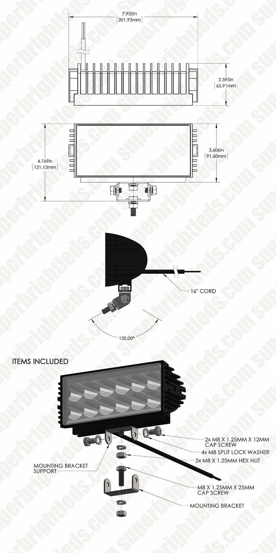 The Xtra series LED light bar has 12 powerful LEDs in an 8” light bar. The dual-row design produces 2,700 raw lumens of cool white light. An aluminum housing and polycarbonate lens protect internal components. The integral heat sink allows protects LEDs from overheating. Includes mounting hardware and adjustable stainless steel mounting bracket.