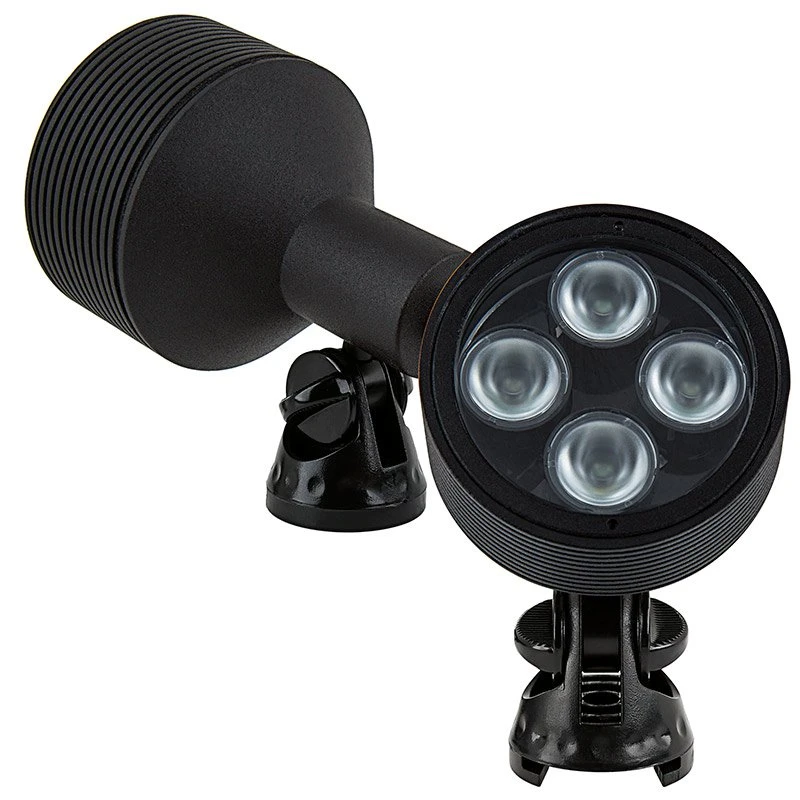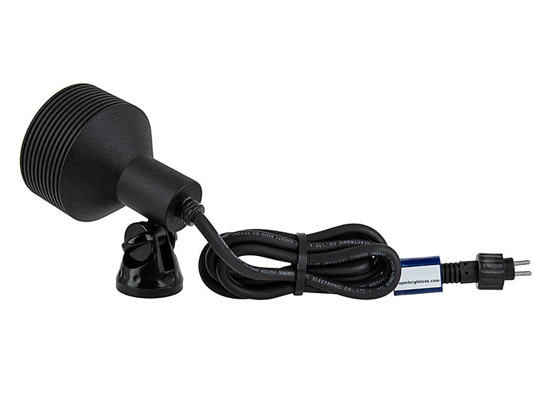 These LED landscape lights are an energy-efficient solution for architectural lighting, garden lighting, outdoor accent lighting, and tree uplighting. They’re also perfect for use as underwater pond lights and fountain lights when used with a weighted base (sold separately). The 8-watt outdoor LED spotlight emits up to 625 lumens and produces a 30° beam of white illumination. An IP68-rated waterproof black powder coated brass housing protects internal components, and an adjustable mounting base allows the fixture to be aimed up or down with in 80° of the mounting surface. The LED spotlight has 12V AC/DC operation and a 4’6″ power cord with a G-LUX plug-and-play connector for easy installation in a G-LUX landscape wiring system. Can also be used in an existing low-voltage landscape wiring system with a G-LUX pigtail power cable and is easily mounted with a ground mounting stake. See all compatible G-LUX series products and accessories.
