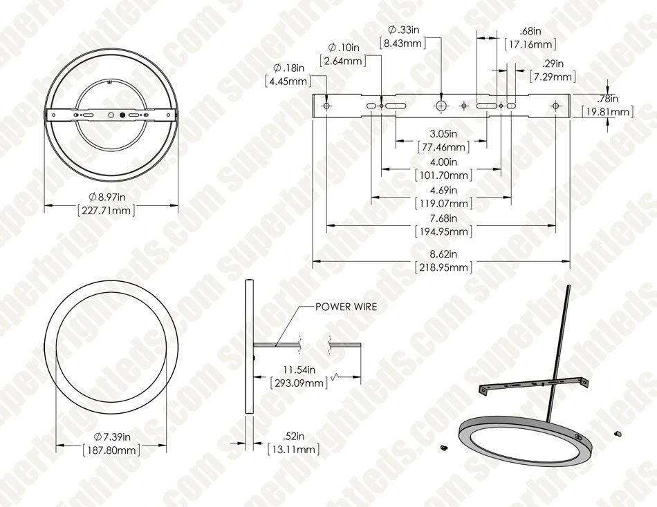 The low-profile dimmable 9″ downlight features a magnetic base with removable satin nickel trim. The light is customizable with optional trim rings to match your decor. Equivalent to 100W incandescent fixtures, it is ideal for new construction, remodeling, and retrofit applications. At 18W, the downlight delivers 1,440 lumens and is well-suited for use in kitchens, closets, hallways, and more. The included bracket and hardware flush mount directly to a junction box. For existing can light housing, use an optional 4″ or 5/6″ can light conversion kit (see accessories).
