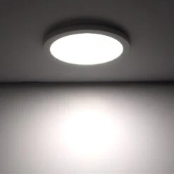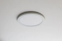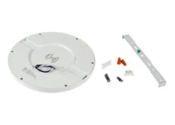 The low-profile dimmable 9″ downlight features a white trimmed magnetic base customizable with optional trim rings to match your decor. Equivalent to 100W incandescent fixtures, it is ideal for new construction, remodeling, and retrofit applications. At 18W, the downlight delivers 1,440 lumens and is well-suited for kitchens, closets, hallways, and more. The included bracket and hardware flush mount directly to a junction box. For existing can light housing, use an optional 4″ or 5/6″ can light conversion kit (see accessories).
