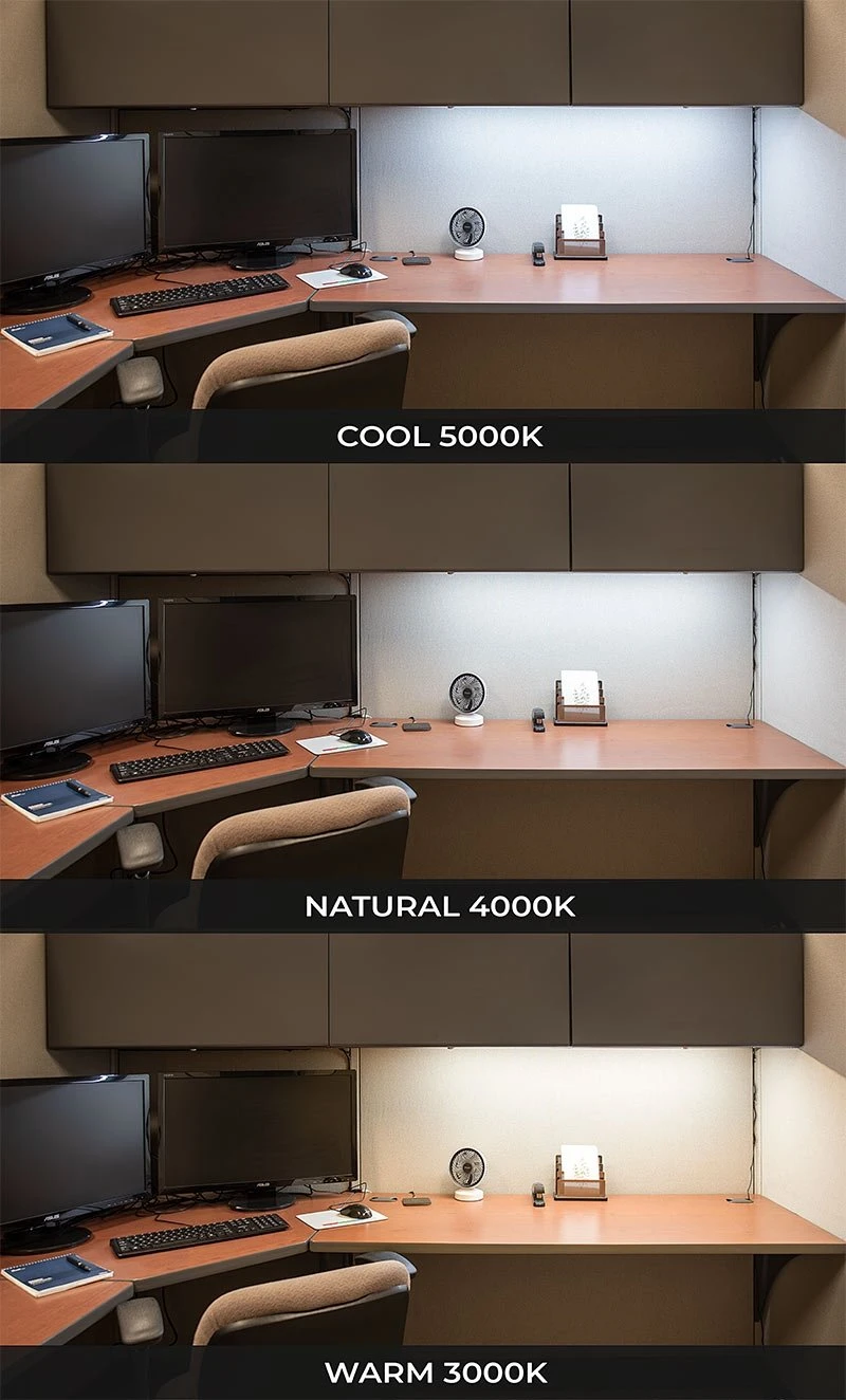 Cool 5000K, Natural 4000K, Warm 3000K
