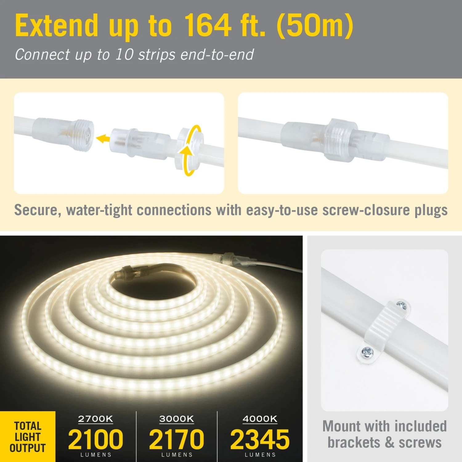 - Driverless LED light strips are waterproof rated IP67, perfect for indoor or outdoor use