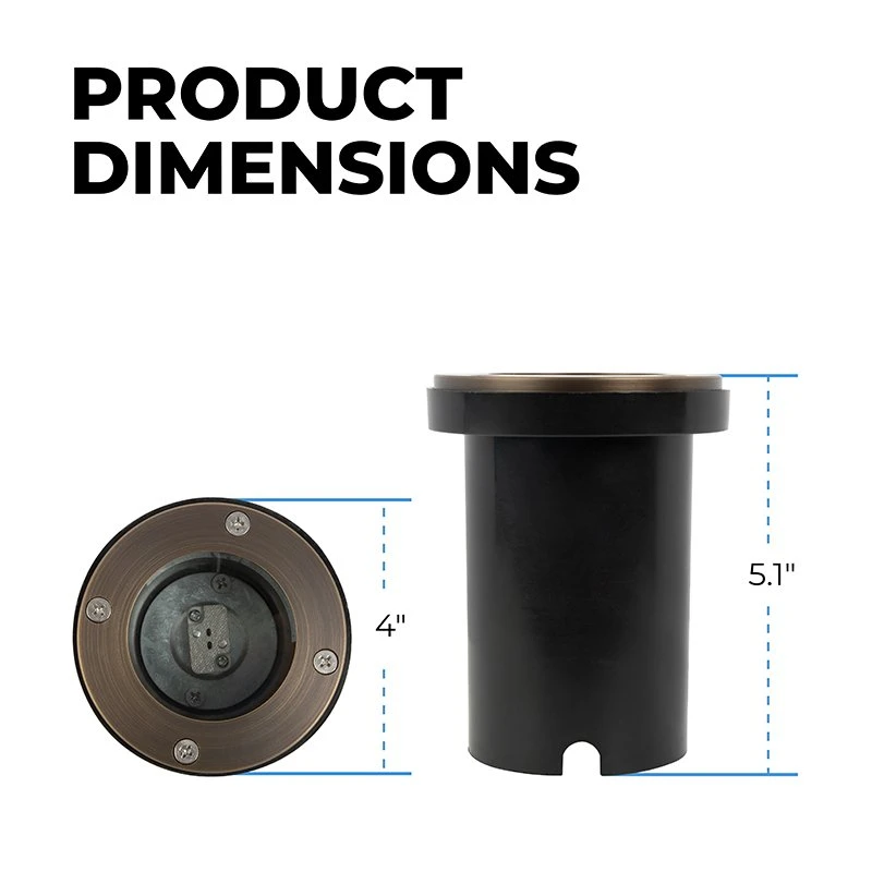 The solid brass LED-ready flat top in-ground well light is available with an RGB+tunable white MR16 smart bulb and optional RF remote control or Wi-Fi controller. Pair the bulb with your smartphone, tablet, Amazon Alexa, or Google home assistant for hands-free control with the Wi-Fi hub. The bulb can be customized, selecting from various color-changing/white modes and adjusting the speed, brightness, color, saturation, or white color temperature. Stainless steel hardware secures the flat top and seals the glass lens to the brass housing for waterproof construction. Install the polycarbonate sleeve with good drainage for optimal fixture life. This brass in-ground well light is ideal for landscape uplighting of trees, gardens, and building facades.