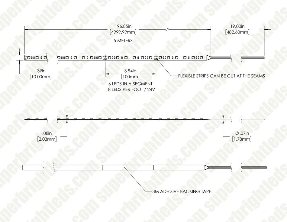Custom-length strip sections are cut from a larger reel and will not have wire leads. Soldering or the use of solderless connectors (sold separately) is required. See accessories for compatible connectors.