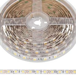 This flexible Radiant Series LED light strip operates on 24 VDC and can be used in longer runs than 12V strips. It emits 385 lumens of warm white, natural white, cool white, blue, green, or red light per foot. The LED tape light can be easily cut into separate 6-LED segments and installed with its peel-and-stick 3M™ adhesive backing. Minimum length is 3.28′. Run the strip back to power every 49′ to avoid excessive voltage drop. This strip light is covered by a lifetime warranty. It’s great for cabinets, under-cabinet lighting, coves, bookshelves, or other indoor applications where space is limited.