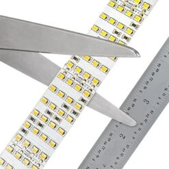 This custom-length white LED strip light from the Highlight series is a flexible strip light available in 1 meter increments and can produce up to 1,317 lumens per foot. With a Color Rendering Index (CRI) of 94, the strip will illuminate any objects or surroundings with accurate colors. The quad-row LED tape light is available in custom lengths up to 29.87 meters and is customizable by cutting into separate 2″ 24-LED segments. The included 3M™ adhesive backing allows for easy installation and surface mounting.