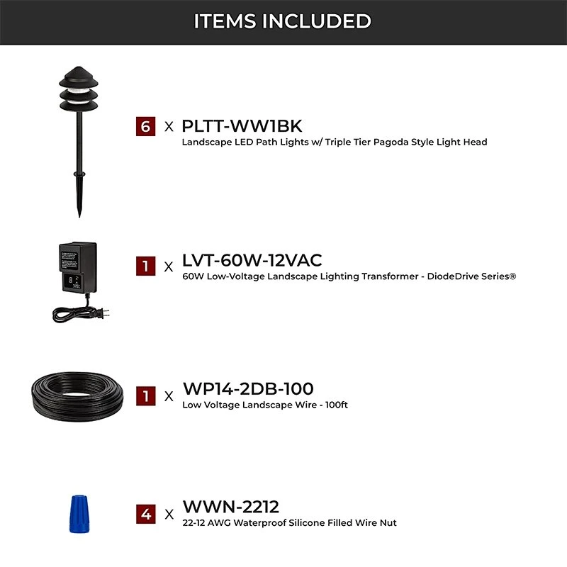 Be the first to review “LED Landscape Lighting Kit – 6 Triple Tier Pagoda Path Lights – Low Voltage Transformer – Warm White” Cancel reply