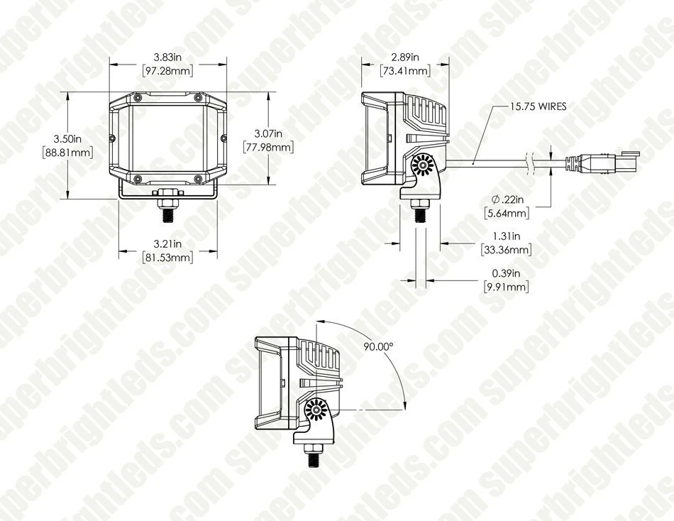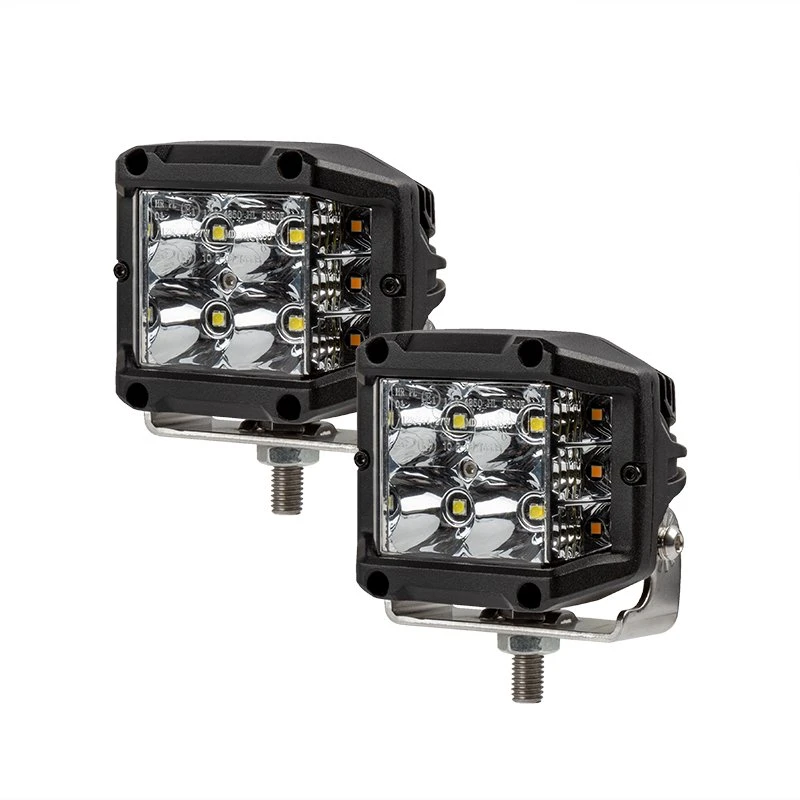Our HS3 Series features 3″ side shooter lights with an ultra-modern design. The LED pod light produces 2,340 lumens and is available with either a 10º spot beam pattern for long-range visibility or a 90º beam pattern for area lighting. The amber strobe side shooter broadens the light beam, producing a 140º spread of light and acts as a hazard light. An anti-corrosion die-cast aluminum housing and durable polycarbonate lens provide dust, water, and impact resistance. Mount the light pods to a variety of vehicles using the included stainless steel mounting hardware. Ideal for A-pillar lighting, off-road equipment, and ATVs and UTVs.