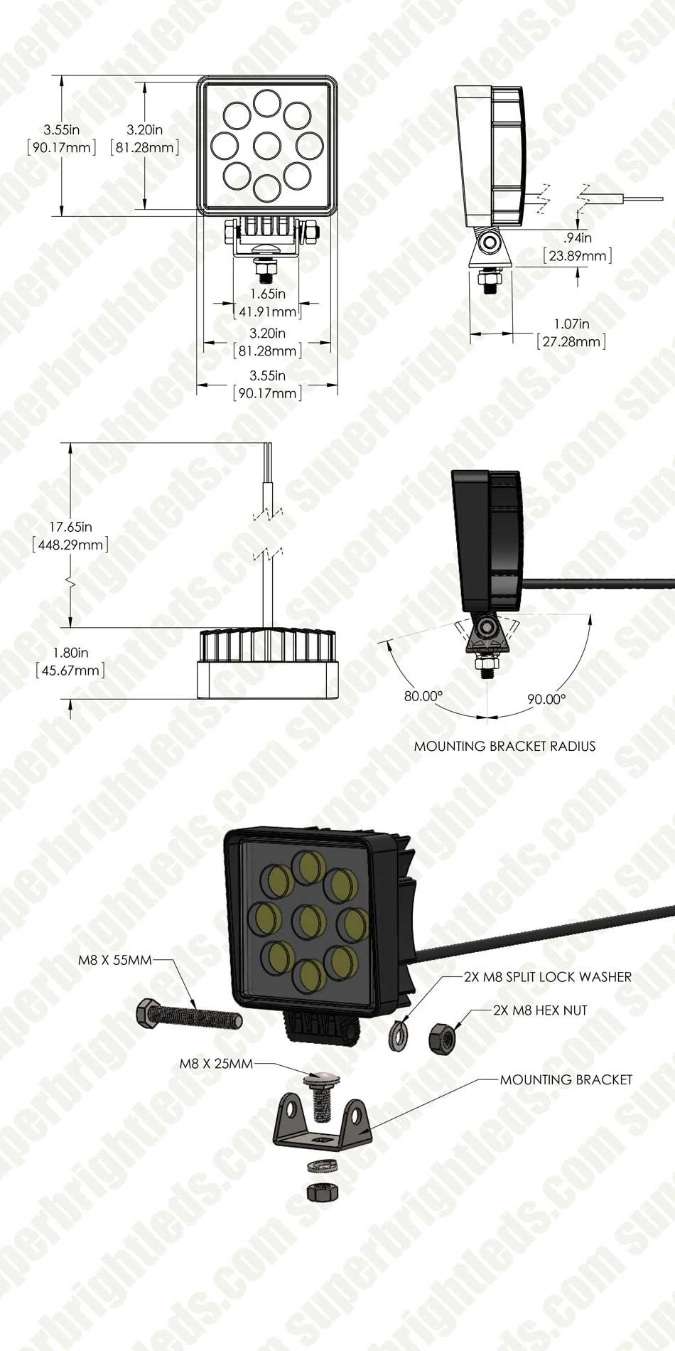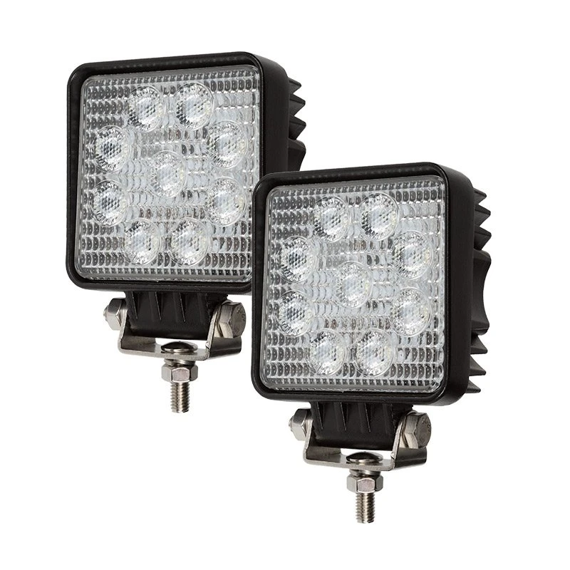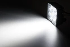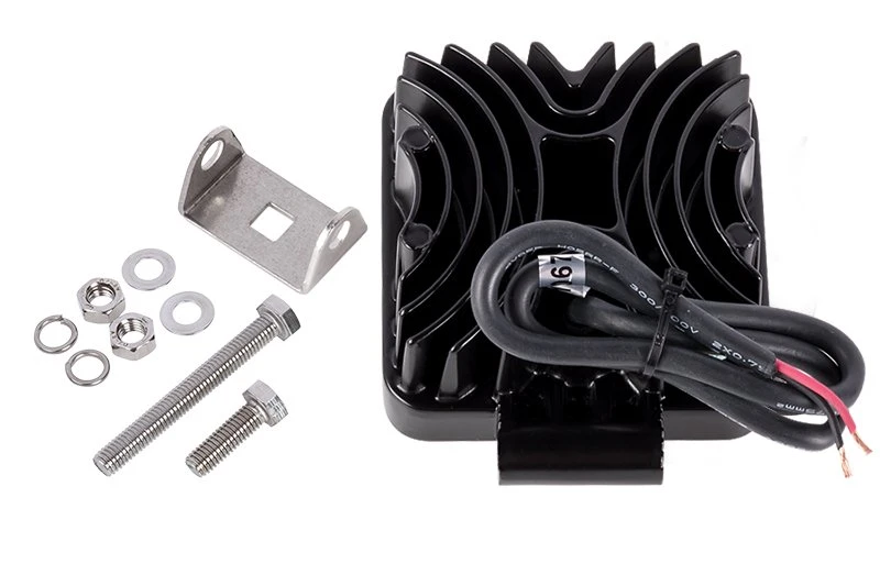 The UTE Series LED Pod Lights feature heavy-duty construction with a classic lens design for uniform light distribution. Each 4″ square work light in this 2-pack emits 1,600 raw lumens of cool white illumination. Choose either a focused 30° spot or wide 60° flood beam patterns. The durable LED pod lights are waterproof and shock resistant. The sealed PMMA lenses keep the LEDs dry even when completely submerged. Aluminum housing with integral LED-cooling heat sinks protect internal components from overheating. Each work light has an adjustable stainless steel mounting bracket that mounts easily on off-road vehicles, tractors, and boats.